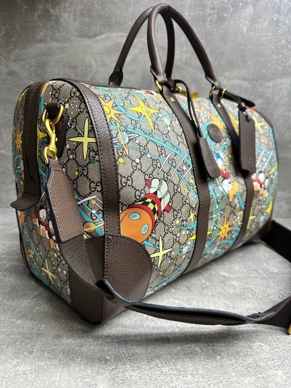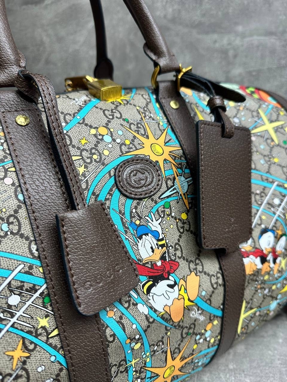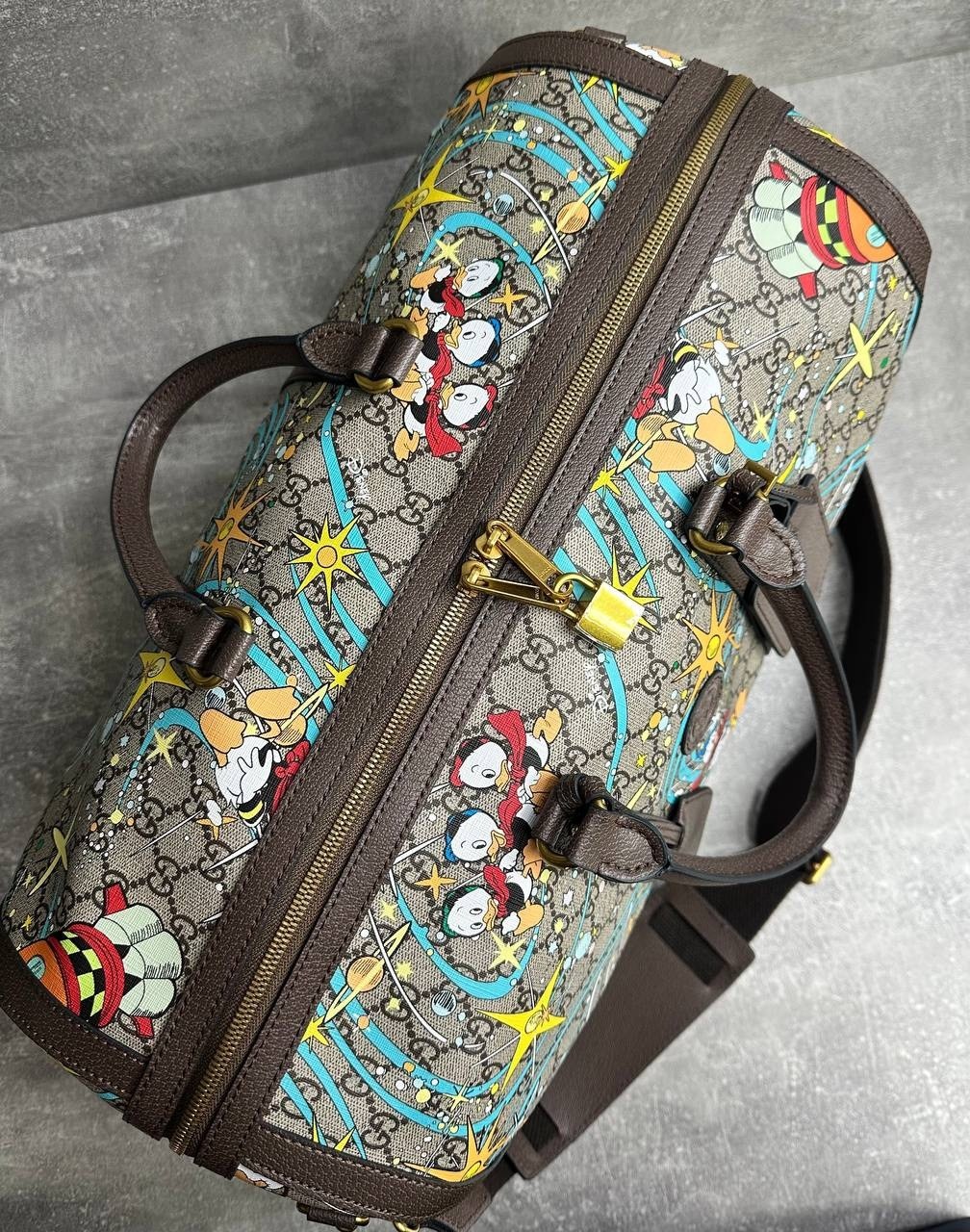 Дорожная сумка gucci disney donald duck с принтом.