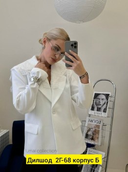 Стильный пиджак с кружевным воротником.