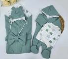 Конверт на выписку одеало в нежных,постельных оттенках изготовлена из мягкой,трикотажной тканьи капитоний Внутренний подклад сшит из 100хлопка.