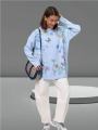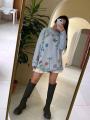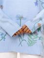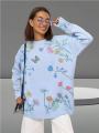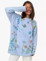 Платье-свитер свободного кроя с нежным принтом в виде полевых цветов и бабочек Мягкая вязка, длинные рукава и удобная длина создают уютный, но при этом женственный образ.
