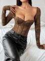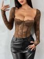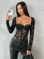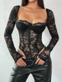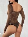 Кружевное боди с длинным рукавом
