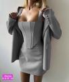 Комплект, состоящий из двубортного жакета, корсета на замке и юбка.