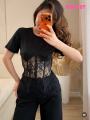 Футболка с гипюровым корсетом