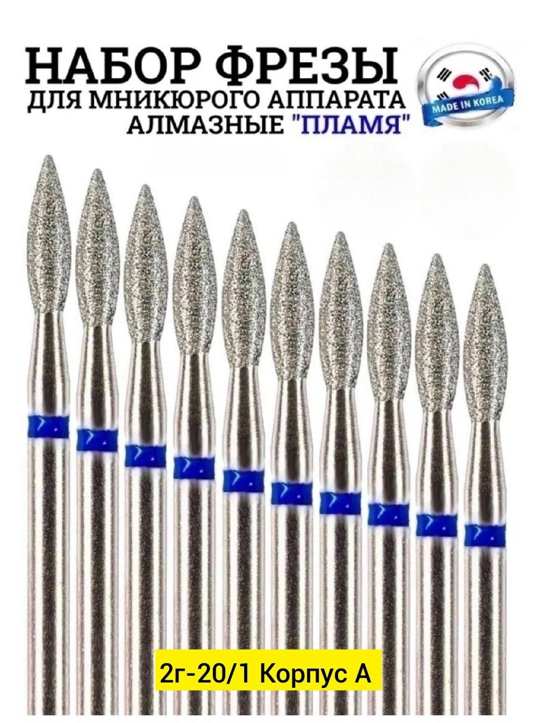 Фрезы пламя для маникюра 10-шт.