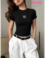 Футболка по фигуре в вышивкой в виде бабочки подходит на любой тип фигуры Комфортная посадка, прямой крой, удобно носить или заправлять Сзади декорировано бабочками, хорошо тянется!.
