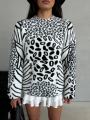 Красивый,мягкий свитер с необычным принтом.