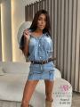 Новинка джинсовое платье в стиле милитари Голубой деним, карманы-карго и ремень создают смелый и уверенный образ Идеальный выбор для тех, кто любит экспериментировать и не боится быть в центре внимания Сочетайте с ботинками в армейском стиле или кедами.