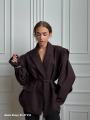 Акцентный пиджак с объмными рукавами и поясом: делает талию, образ дорогим и стильным.