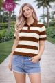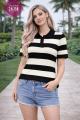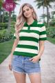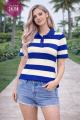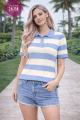 В наличии стильная футболка-поло в полоску.