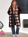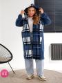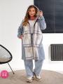 Женская кардиган в клетку с карманами.