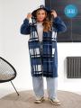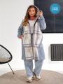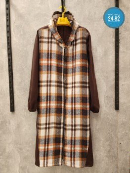 Женская кардиган в клетку с карманами.