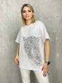 Футболка со стразами идеально подойдет для особых создания яркого образа.