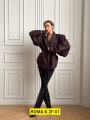 Акцентный пиджак с объeмными рукавами и поясом: делает талию, образ - дорогим и стильным.