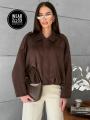 Модель выполнена из качественной эко замши и имеет свободный покрой, что делает ее комфортной для повседневной носки.