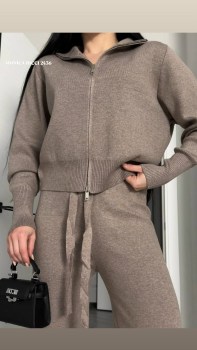 Мягкий костюм из приталенный кофточке с двусторонней молнией и лианы-клш В наличии 6 классных расцветок!.