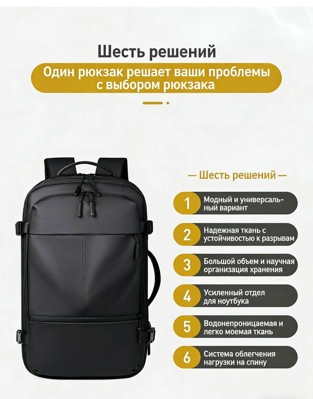 Лаконичный черный цвет подходит под любой образ от делового до повседневного Это не просто рюкзак, а надежный спутник на каждый день!.