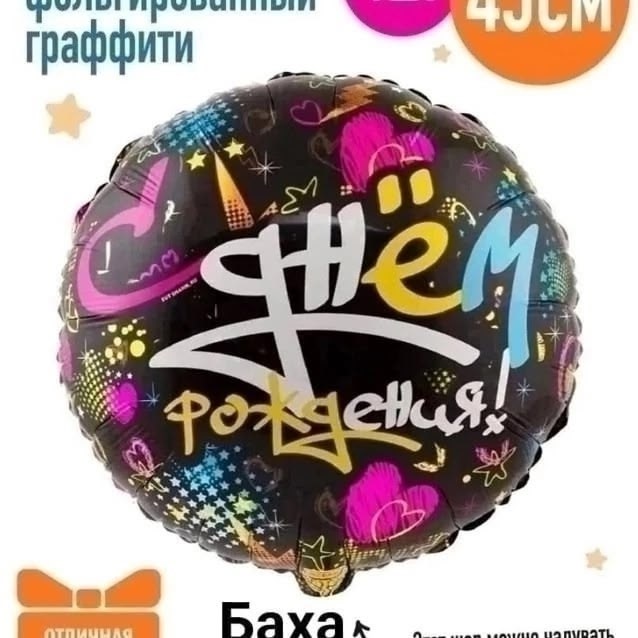 Воздушный шар круг с надписью с днем рождения.
