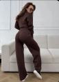 Трикотажная ткань лапша в рубчик, которая не колется, не мнтся и не вытягивается в коленях.