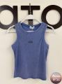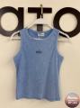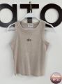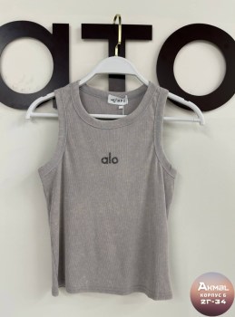 Однотонная майка с широкой окантовкой и с надписью alo воплощение комфорта, стиля и осознанности, расцветающее на фоне утонченной простоты.