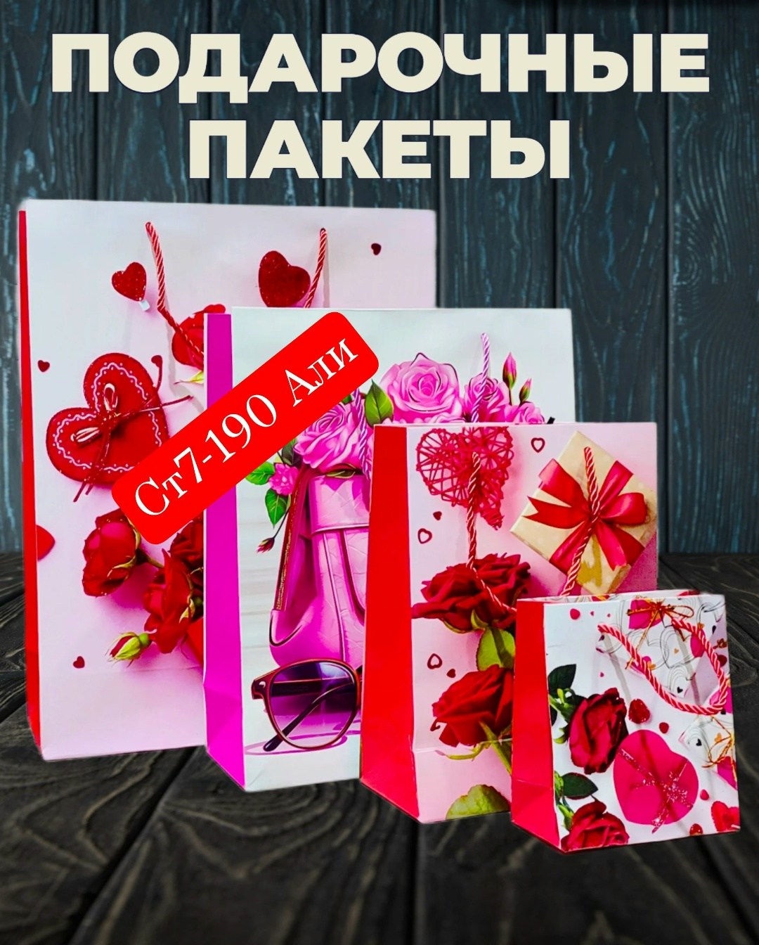 Подарочный пакет вертикального формата, 4 размеры будет достаточно вместительным для любого типа подарков.