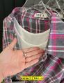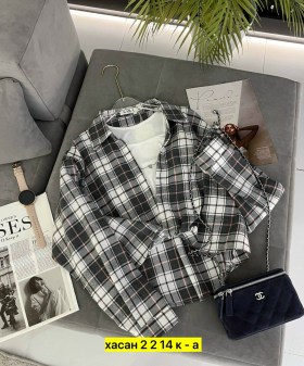 Кроп-топ с широкими бретелями выполнен в форме майки, комплект рубашка в клетку и топ майка пошит в одной цветовой гамме Женская клетчатая рубашка на весну.