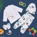 В комплекте: распашонка, ползунки,шапка,царапки.
