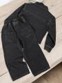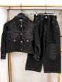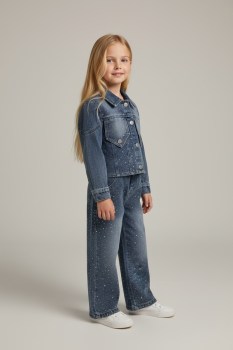 Деним высокого качества украшен стразами.