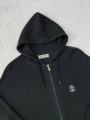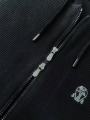 Костюм двойка чрного цвета пригодится не только для спорта, он может послужить и в повседневной жизни Худи на молнии дополнено глубоким капюшоном на завязках, а брюки свободного кроя имеют завязки на талии На куртке и брюках имеются накладные карманы Комфорта добавляют манжеты на рукавах и подоле, а вышитая эмблема говорит о принадлежности бренду.