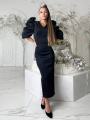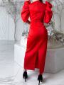 Вечернее платье в потрясном дизайне интригующий лиф шикарная рюша по рукаву женственно и в тоже время сексуально застежка молния по спинке доина изделия 130 см.