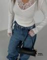 Обтягивающий кружевной лонгслив с длинным рукавом - в тренде нарядный приталенный фасон с вырезом на груди подчркивает фигуру и создат романтичный, стильный образ.