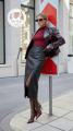 Длинная юбка миди с разрезом привлекает внимание своей красотой и изяществом.