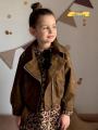Стильная детская косуха из мягкой эко-замши идеальный выбор для юных модниц Удобный крой, серебристая фурнитура и трендовый карамельно-коричневый оттенок делают образ современным и уютным Подходит к платьям, джинсам и юбкам универсальный must-have!.