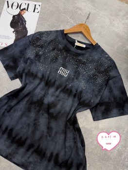 Очаровательная нежная милая футболка со стразами miu miu в этом году.