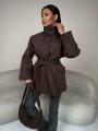 Элегантный женский пальто станет идеальным выбором Пальто кроя обеспечивает комфорт и стильный вид, а прямой силуэт подчеркивает фигуру Теплый, наполнитель пух, можно носить с классикой также под спортивный образ Идет в комплекте с сумочкой.