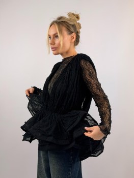Состоит из двух элементов, кружевной лонг объемный блузон.