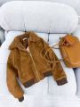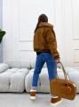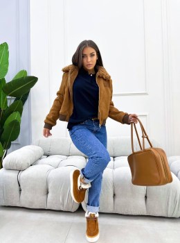 Стильная дубленка-бомбер из искусственной замши и натуральным меховым воротом в самом топовом цвете от.
