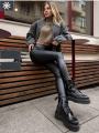 Женские теплые леггинсы лосины- стильная и практичная замена привычным брюкам и джинсам Кожаные черные леггинсы - тренд сезона Лосины теплые с начсом выполнены из высококачественной экокожи, поэтому станут базовой вещью в каждом гардеробе.