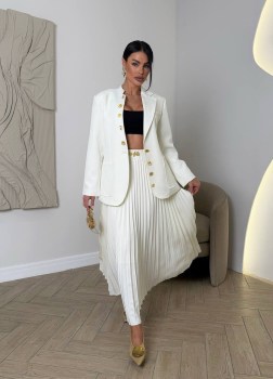 Плиссированная юбочка шикарно дополняет.