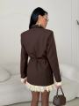 Комфортный, удлиненный пиджак ( на полном подкладе ) в потрясном дизайне поясок в комплекте отличная посадка.