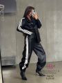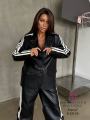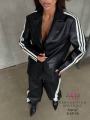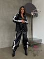 Почувствуй себя королевой стритстайла в этом дерзком костюме Блейзер и спортивные брюки из экокожи с фирменными лампасами это идеальное сочетание элегантности и спортивного шика Брюки с регулируемыми завязками на щиколотках позволяют создать разные образы Подчеркните свою уверенность и безупречный вкус!.