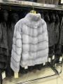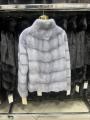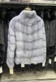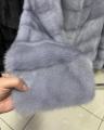 Шубка из меха европейской норки стойка ворот цвет серо-голубой модель рубашка.