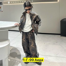 Стильный детский спортивный костюм с трендовым леопардовым принтом - идеальный выбор для модных и активных детей Комплект состоит из удобной олимпийки на молнии и свободных брюк, создающих яркий streetwear-образ.