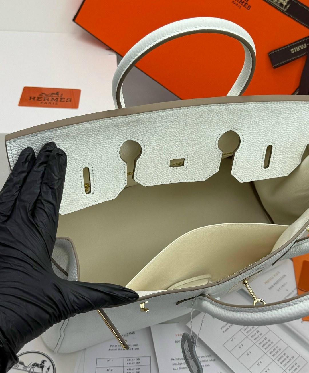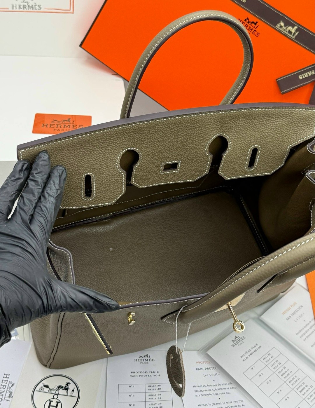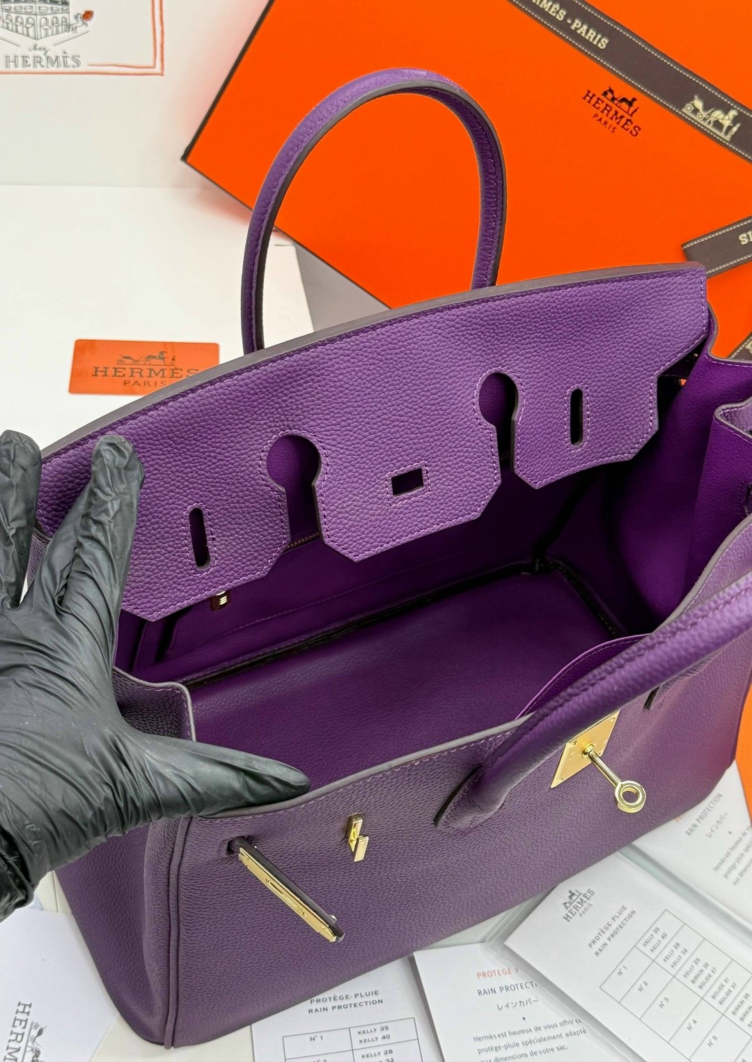 В комплект фирменный пыльник, двойная коробка, карточка, документы, лента, лошадка, замок.