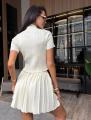 Нежная футболка с юбкой плиссированной элегантная и воздушная, мягко подчркивает линию плеч и добавляет образу скромность Лгкая ткань красиво драпируется, создавая утончнный и стильный силуэт.