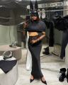 Макси-юбка из струящейся тканьи с кружевной высокой талией и мягкой драпировкой эффектный акцент образа.