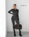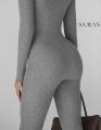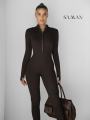 Облегающий комбинезон в рубчик с длинным рукавом и воротником на молнии фигура вау!.