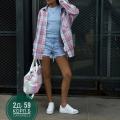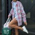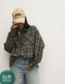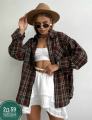 Лето осень винтажный стиль, универсальная женская рубашка свободного кроя с лацканами, клетчатая рубашка с длинными рукавами, трансграничная мода.