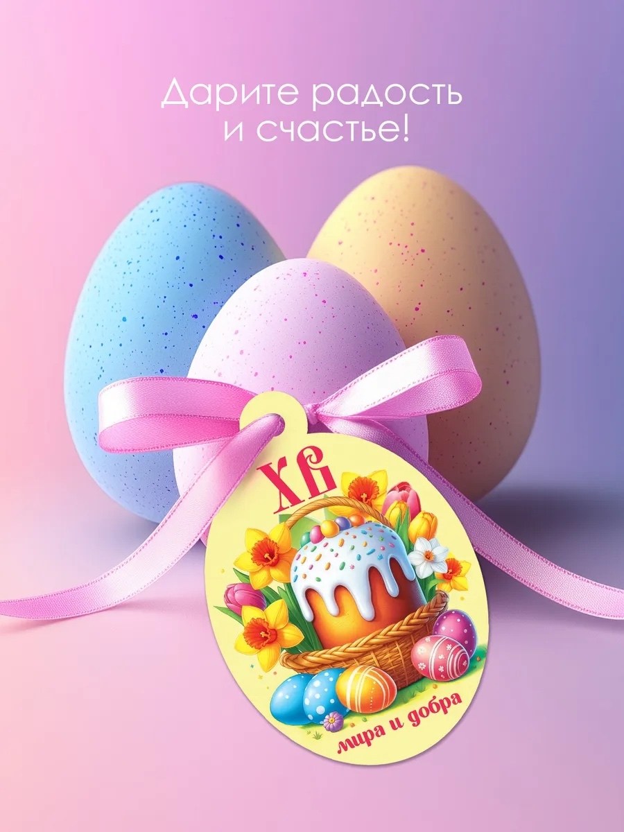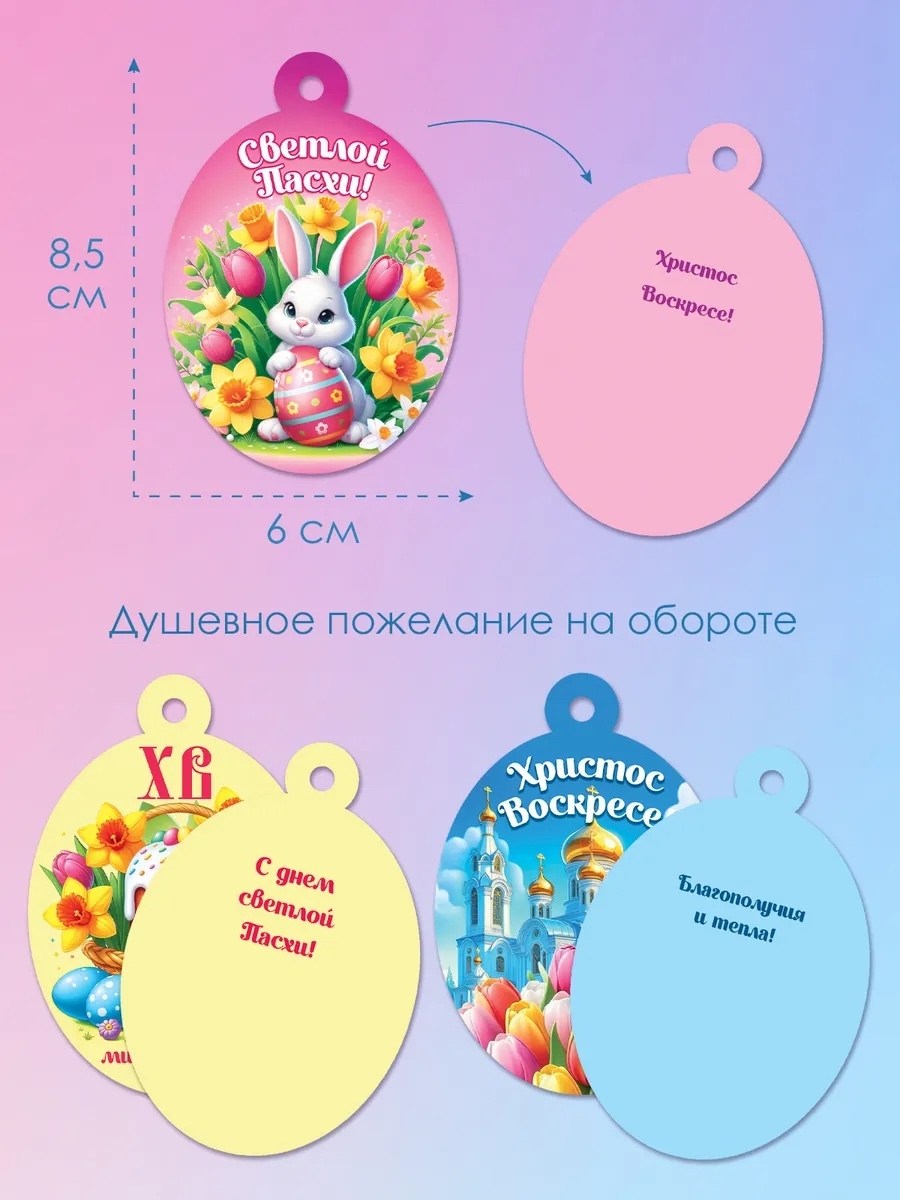 Это милое оформление для любого подарка на традиционный христианский праздник Мини-открытки с тематическими дизайнами станут чудесным дополнением к подарочной коробке или пакету Устройте сюрприз любимому человеку, другу или коллеге, чтобы порадовать их в важный православный день На обороте можно добавить поздравление лично от себя В комплект входит 6 штук с тремя дизайнами Размер 60х86 мм Материал плотный картон Порадовать таким дополнением к презенту можно как близких людей, так и коллег, приятелей и знакомых Добавьте теплые слова на оборот, и они несомненно вызовут улыбку на лице получателя Набор картонных бирок универсален и удобен, такое украшение покажет ваше внимание к тому, кто получит поздравление Мини-открыточки имеют универсальный изысканный дизайн и выполнены в лаконичных цветах Также бумажные бирки отлично украсят рукодельные подарки на светлую пасху Подарите открытку в самостоятельном виде, как маленький сувенир на праздник, или приложите как дополнение к основному презенту Благодаря использованию качествонных красок, изображение не выцветет, не потускнеет спустя время, так что память о вашем сюрпризе будет храниться еще долгие годы Открытку можно приложить к шоколадке, коробке конфет, традиционным яйцам или куличу Такой сувенир без слов даст понять, насколько вы любите и цените близкого человека Подарите вашим дорогим людям счастье, радость и улыбки Христос воскресе!.