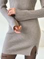 Трикотажное платье в рубчик Хорошо впишется для повседневного образа.