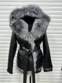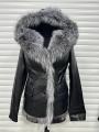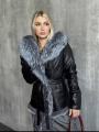 Куртка из эко кожи с натуральным мехом чернобурой лисы, длина 65 см.